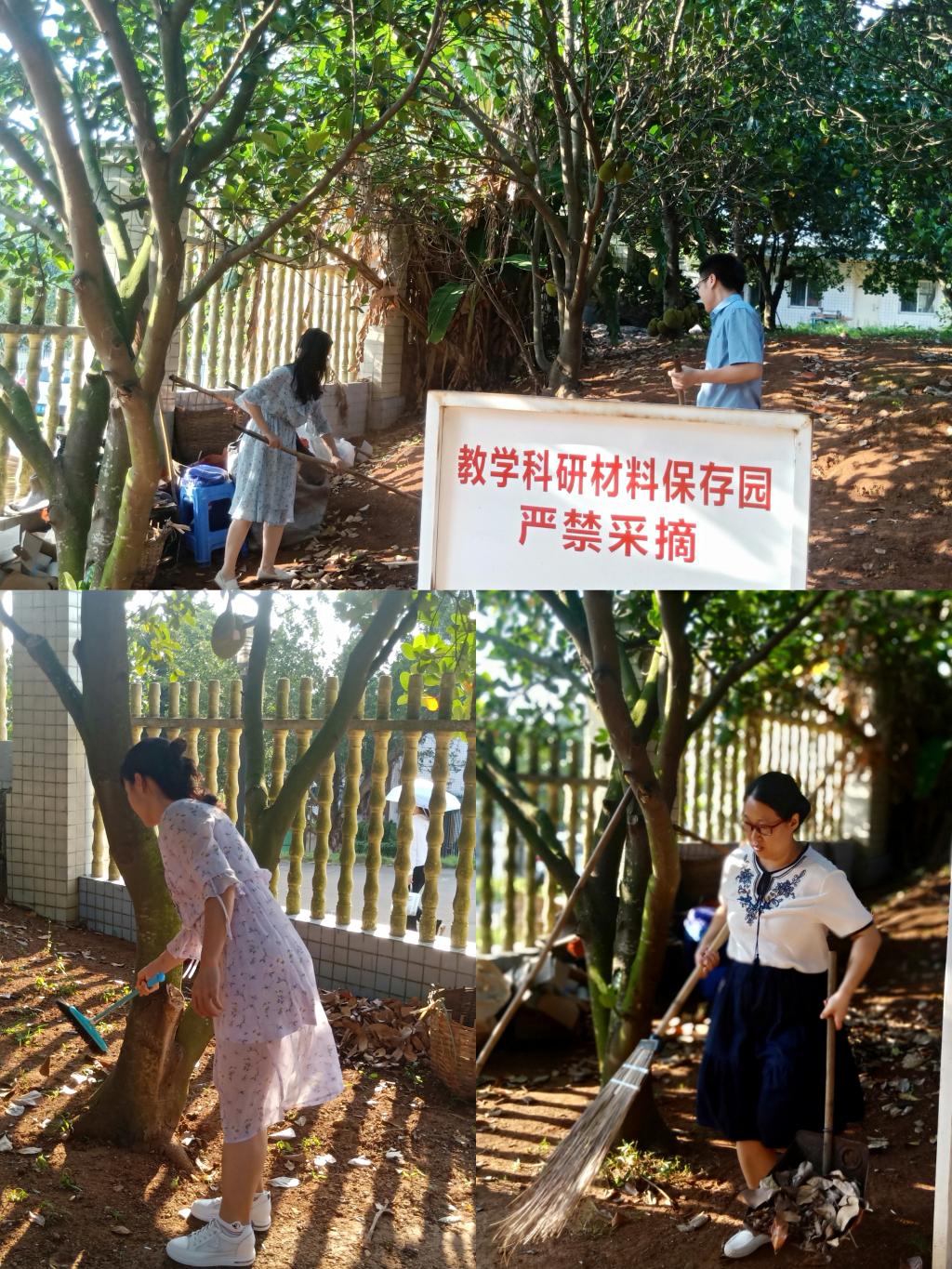 教工积极参加林果基地卫生扫除