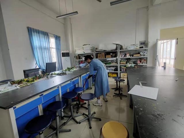 机关党支部党员的带领下,现场师生分成清扫清洗林果楼办公室内外卫生、清理基地大棚的树苗、打扫大院内外环境卫生、检查清理影响消防安全等工作的小组。老师和同学们都顶着烈日和高温,发扬不怕脏,不怕苦,不怕累的精神,劳动干劲十足,师生劳作热情温度不亚于烈日高温。经过师生们的共同努力,顺利地完成工作任务,整理出一个洁净、安全的教学科研基地环境。